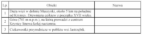 Zadanie 1. (4 pkt) Odszukaj na mapie i wpisz do tabeli nazwy niżej opisanych obiektów geograficznych.