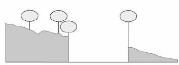 deniwelacjach terenu, z licznymi pagórkami |
