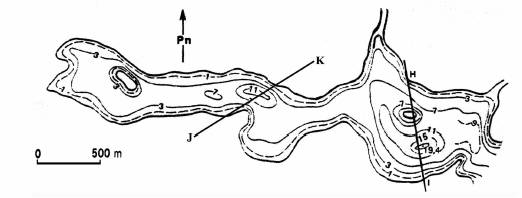 ....................................................................................................................................................... ....................................................................................................................................................... ....................................................................................................................................................... Dolina rzeczna ....................................................................................................................................................... ....................................................................................................................................................... ....................................................................................................................................................... Zadanie 4. (4 pkt) W lutym 1982 roku na obszarze Kotliny Płockiej wystąpiła rozległa powódź, która objęła m.in. Radziwie (dziś dzielnicę Płocka) i Popłacin. a) Na podstawie analizy mapy wyjaśnij, dlaczego powódź objęła właśnie tę część Płocka. ....................................................................................................................................................... ....................................................................................................................................................... b) Wymień dwie przyczyny występowania zimowych powodzi w Polsce. ....................................................................................................................................................... ....................................................................................................................................................... Zadanie 5. (2 pkt) Pod koniec lat 60. taras zalewowy między Płockiem a Włocławkiem po prawej stronie Wisły został przekształcony w zbiornik retencyjny nazywany Jeziorem Włocławskim. Podpiętrzenie Wisły kończy się nieco powyżej Płocka. Na podstawie analizy mapy podaj dwa przykłady świadczące o zmianach środowiska przyrodniczego w wyniku powstania zbiornika retencyjnego. 1. ....................................................................................................................................................... 2. ....................................................................................................................................................... Zadanie 6. (6 pkt) W południowej części Kotliny Płockiej znajdują się liczne jeziora polodowcowe, tworzące Pojezierze Gostynińskie. W tabeli przedstawiono dane dotyczące trzech z przedstawionych na mapie jezior Pojezierza Gostynińskiego, a poniżej ich plany batymetryczne wykonane w różnych skalach, innych niż skala mapy.